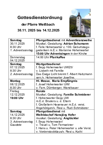 Gottesdienstordnung Weißbach