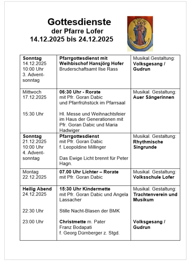 Gottesdienstordnung Lofer